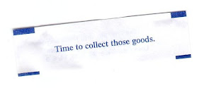 Hmmmm...not really sure where I'm going to collect them from. Maybe it's talking about the goods I owe to everyone else; it might be a warning letting me know that all those hungry debt collectors are going to start knocking at my door. Maybe today's fortune is telling me I need a hobby of some sort; I need to start collecting something. When it comes to hobbies, I really have nothing solid at the moment. In fact, I can't think of the last time I had a true hobby. Basically, nothing can really hold my interest for any lengthy period of time. Looking at all the RSS feeds pumping into my Reader account each day, it's obvious that I can't settle on anything specific. In a way I'm satisfied with that: moving from one topic to another; it keeps me from getting too bored.